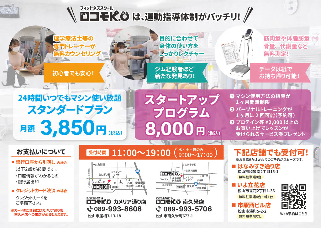 松山市内でご入会した場合、松山市内であればどの店舗もご利用いただけます。