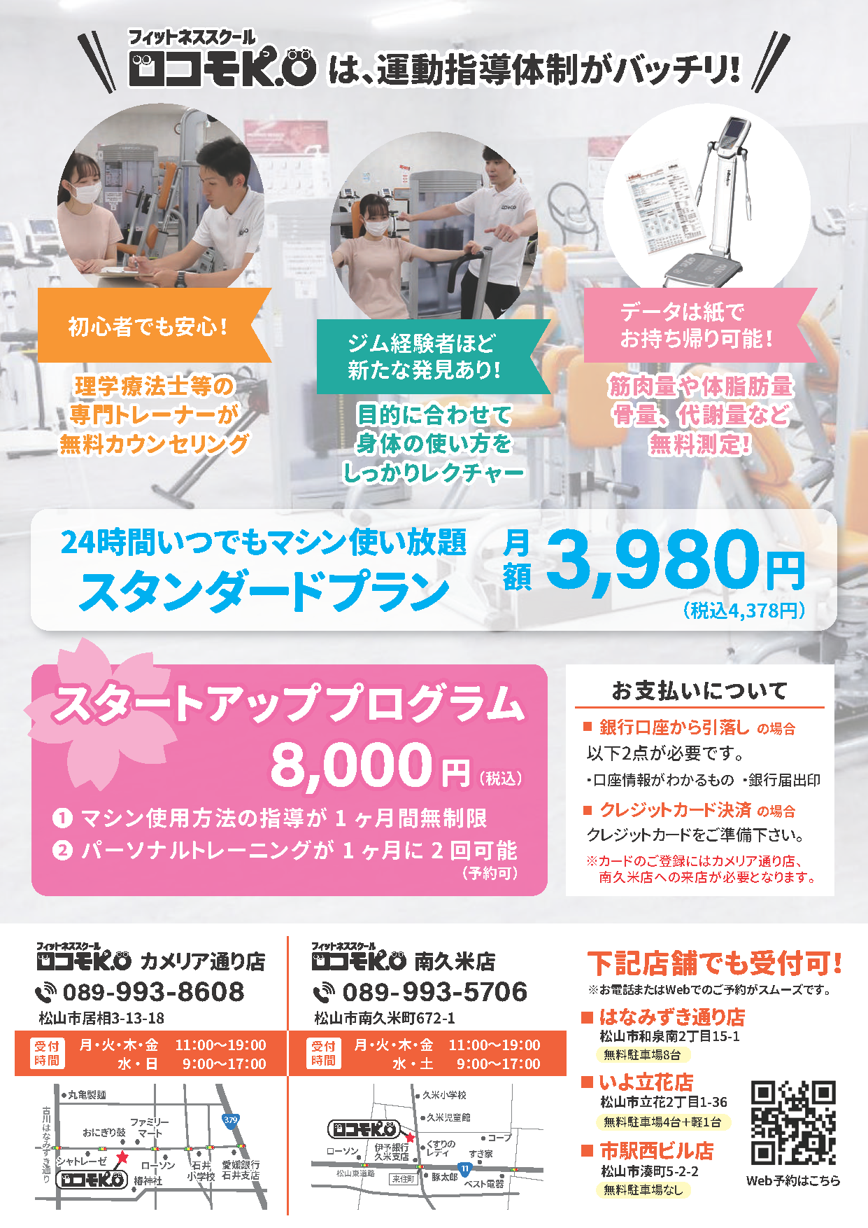 松山市内でご入会した場合、松山市内であればどの店舗もご利用いただけます。
